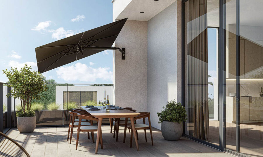 Le premier parasol mural a été développé d’un point de vue purement pratique : perdre le moins d’espace possible et assurer une résistance optimale au vent. Entre-temps, le parasol Paraflex s’est imposé tant sur le marché résidentiel que dans le secteur de la restauration. Afin de répondre encore mieux aux besoins des consommateurs d’aujourd’hui, Umbrosa a décidé de lancer un Paraflex UX Full Black, pour que le parasol se combine encore mieux avec le noir des fenêtres, des meubles, des balustrades, etc…