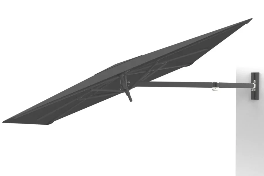 Châssis : Bras de parasol en aluminium et pied mural en noir RAL 9005